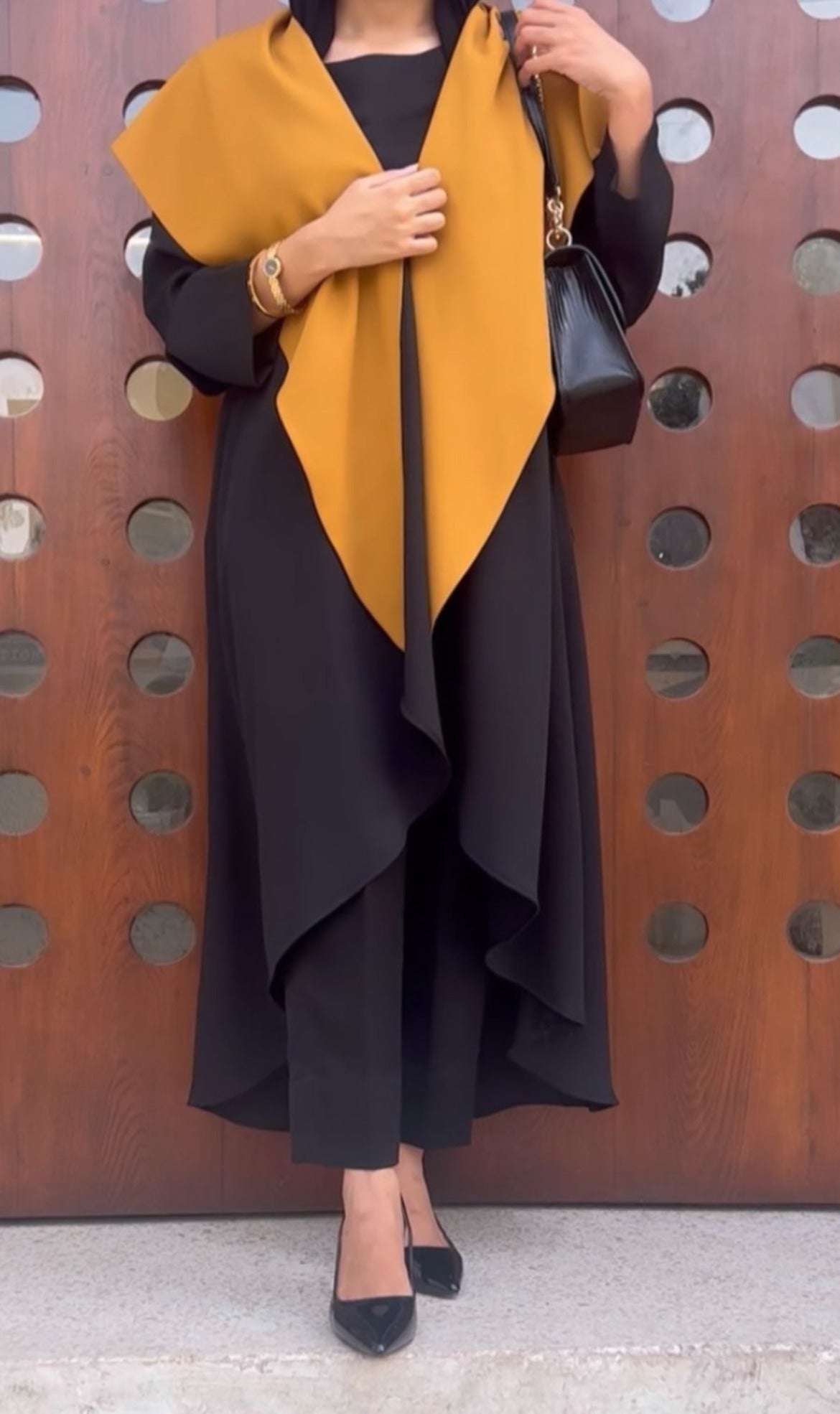 Introducing 'Mostaza,' our stylish sleeveless outerwear. Versatile and elegant, its bold contrasting colors make a striking statement. Style it any way you like for a sophisticated look, perfect for any occasion.
