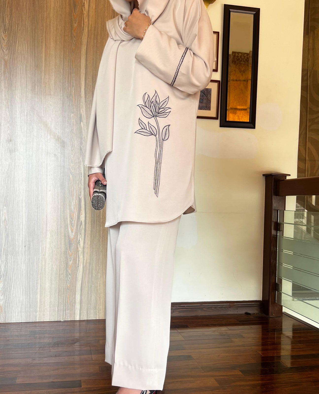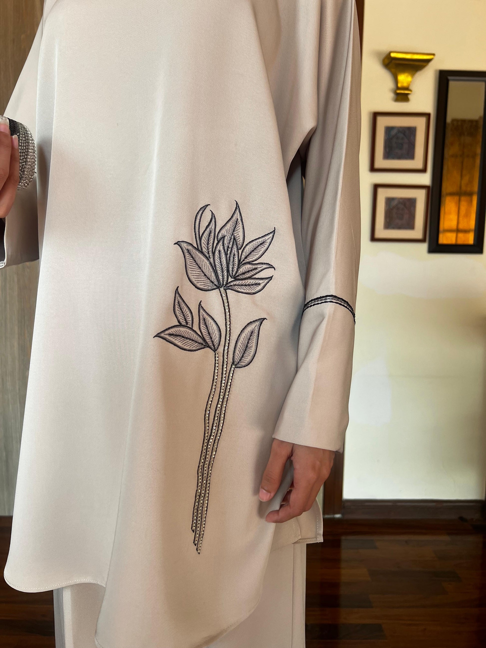 Petal Haze – Inspired by the moon’s soft glow, complementing the delicate florals woven into the outfit. 🌙🌸