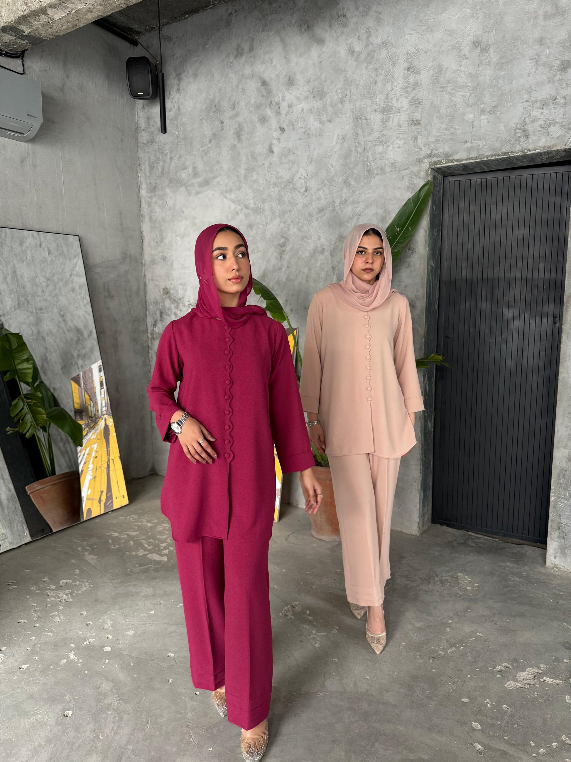 Height of the model wearing peach is 5'5 and fuschia is 5'3